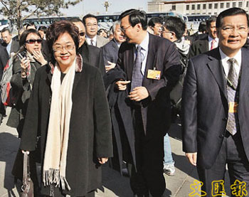 3月3日下午,全國政協十一屆一次會議在北京人民大會堂開幕,圖為來自香港特區的委員在開幕會上。 中新社發 盛佳鵬 攝
