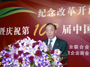 由廣州市工商聯、市總商會、市外商投資企業商會、市民營企業商會共同主辦的“紀念改革開放30周年暨慶祝第103屆中國進出口商品交易會開幕宴會”,14日在廣州白云國際會議中心舉行。廣州市長張廣寧,市委副書記蘇志佳,市委常委、統戰部長孔少瓊等,以及粵港澳商界代表逾1000人出席。