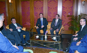 中新網4月16日電 據澳門日報報道,正率團訪問港澳的上海市政協主席馮國勤,15日中午應澳門蘇浙滬同鄉會的邀請,出席該會的歡迎宴會,新一屆上海市政協澳門地區委員也出席。全國政協常委、澳博行政總裁何鴻燊熱情接待馮國勤一行,并陪同馮國勤參觀在新葡京酒店展出的馬首銅像。