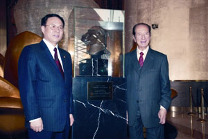 滬政協主席訪澳門推合作 何鴻燊陪參觀馬首銅像