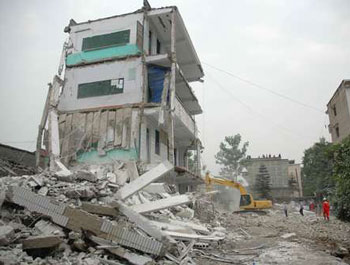災區不少校舍在地震中倒塌。(圖片來源:大公報)