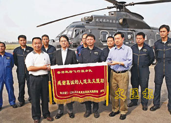 中新網(wǎng)6月6日電 據(jù)香港文匯報報道,一直在四川執(zhí)行飛行救援任務(wù)的香港飛行服務(wù)隊在向清平災(zāi)區(qū)運送完1.2噸物資后,救援工作暫告完成。據(jù)統(tǒng)計,飛行隊在過去20天成功救出96名受困災(zāi)區(qū)民眾。四川省人民政府5日在廣漢機場特贈錦旗以表彰飛行隊在川的優(yōu)異表現(xiàn)。
