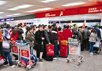 來往香港和內地的客流量很大,統計顯示,深航去年1000多萬旅客中,有近400萬是香港旅客或到香港旅游的人,占了整個運輸量近40%。而深圳機場提供的數據顯示,往香港的內地游客中,有1/4是通過深圳機場中轉至香港。同時,經過香港中轉往內地的國際旅客數量也非常龐大。