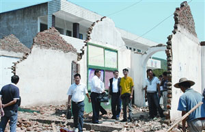 梓潼縣東石小學(xué),原有6個(gè)年級(jí)分12班共約300名學(xué)生,教學(xué)樓在“5•12”大地震后定為危樓,近日拆卸。重建的新教學(xué)樓規(guī)劃為兩層,建筑面積710平方米,扣除各種稅費(fèi)后所需資金約76萬元人民幣。