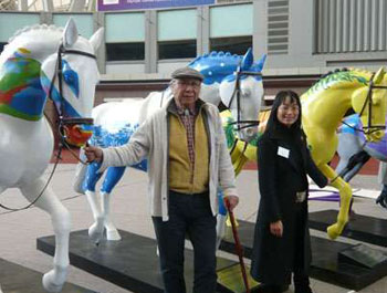 負責東區模型的甘志強,將紅色的馬匹,加上很多具動感黃色跨欄公仔!拔乙灾袊鴩鞛橹黝},紅黃兩色。劉翔啟發到我設計這些跨欄的黃種人,象征中國發展跨進一大步!