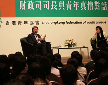 曾俊華在見面會開始之初就明確表示,歡迎學生發問任何問題,鼓勵他們切勿過分緊張。“你們有任何想法,或者你們知道親戚朋友有什么看法,都盡管提出來。如果你們覺得預算案是稍為沉悶的話,你們可以提出其它比較有趣的話題!