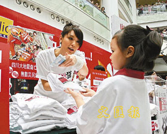 曾志偉25日帶領(lǐng)無線藝人包括黃宗澤、錢嘉樂、張嘉兒、官恩娜等到奧海城出席活動(dòng)向巿民募捐籌款,與現(xiàn)場(chǎng)人士默哀及宣誓向四川災(zāi)區(qū)民眾作出關(guān)愛承諾,又以心形貼紙貼滿巨型諾字心意板,象征為民眾許下承諾。