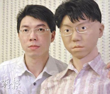 中新網6月4日電 據香港明報報道,外號“瘋狂博士”的香港發明家黎永信,成功開發一個聲稱是全球首創的“人造人機械人”。這個復制機械人3日首次曝光,不但頭發、皮膚質感與真人極似,更可利用3G電話遙距控制活動。黎永信更希望機械人將來可用于義肢技術,減低現時義肢制作成本。