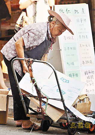 中新網10月20日電 據香港《文匯報》報道,卑躬屈膝靠拾荒維生,換來不足以餬口的微薄收入。香港一項調查發現,逾80%拾荒者沒有領取綜援,近60%人單靠拾荒每月掙取不足400元收入,最年輕的拾荒者竟為8、9歲的小學生,年紀小小便跟隨祖父母撿垃圾,補貼生活。