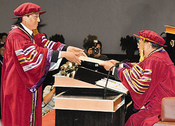 今年城大共有9151名畢業生,分別獲得博士、碩士、學士及副學士等各級學位。11日的典禮大學也向3名社會杰出人士,包括恒通資源集團董事局主席施子清、其士集團主席周亦卿及終審法院常任法官陳兆愷頒授榮譽博士學位,表彰他們對教育及社會的貢獻。