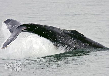 中新網3月19日電 據香港《明報》報道,懷疑在遷徙途中迷路誤闖香港水域的座頭鯨,18日仍未離開,數度在石澳鶴嘴半島附近海域游弋現身。