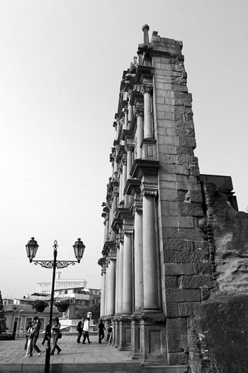 巍峨滄桑的大三巴牌坊,碎石鋪就的狹長街道,隨處可見的鵝黃或是嫩綠色的葡式建筑,古香古色、香火鼎盛的媽閣廟,空氣中飄蕩著的花生糖與杏仁餅、葡撻的混合香氣……