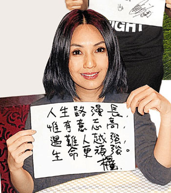 去年曾到訪災區的楊千嬅,眼見當時災區人民的慘況很傷感,千嬅也有到過重災區都江堰安慰和送上物資,當時看到災區一片頹垣敗瓦,傷者處處又斷水斷糧的狀況,還歷歷在目。