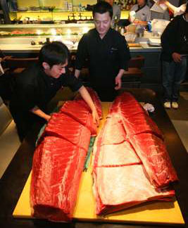 據(jù)香港大公報報道,東京中央批發(fā)市場在每一年開市所售的第一條魚,都是當日全場“最大、最靚”,傳統(tǒng)稱為“日本一”。板前壽司老板鄭威濤以約44萬港元投得該條重276公斤的“魚王”,是首次有港人投得“日本一”。“魚王”昨日已送抵香港,不少市民專程前往各分店一嘗“天價魚王”的滋味,刺身價錢由50元至150元一件不等。