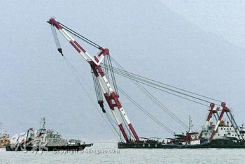 召吊臂船拖至淺水海域