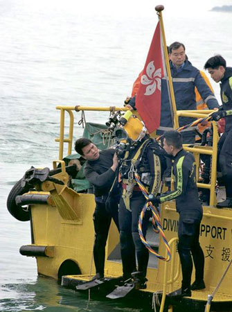 中新網3月27日電 據香港明報報道,香港消防總長周榮德指出,連日來蛙人曾32次潛到海底沉船處搜索。在香港海域翻沉的烏克蘭補給船內布滿浮動雜物,26日一名蛙人的供氣喉管在船艙中被雜物纏住,幸及時由同事協助疏理喉管,被迫在海中停留50分鐘逐步減壓。