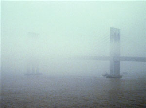 澳門6日上午受到一股潮濕的海洋氣流影響,被濃霧籠罩,能見度只有數百米。