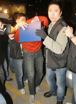 圖:其中一疑犯被遮臉押走。(圖片來(lái)源:大公報(bào))
