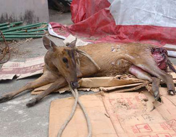 香港漁護署獸醫陳詩寧作供時說,死去的黃麂懷有身孕,約19公斤重,全身無牙齒印,但有兩處可見的撕裂傷口和胸腔肌肉出血,估計牠是腦和肺部出血致死。
