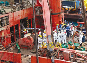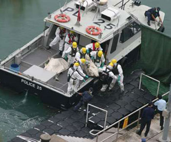 沉沒36天的烏克蘭補給船“Neftepaz-67”,日前被海上大力士“華天龍”號吊起后,搜索行動隨即展開。警方災(zāi)難遇害者辨認(rèn)小組近百成員,戴上防毒膠袍及口罩,配備手提電腦及大批搜索工具,聚集大欖水警基地,由多艘小艇送往大小磨刀洲現(xiàn)場,由28日凌晨搜索至28日晚上9時。