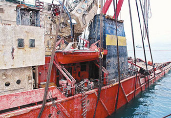 3月29日,香港政府與烏克蘭政府代表團就調查沉船事故發(fā)表聯(lián)合聲明同意打撈。本月2日,烏克蘭船主和交通部廣州打撈局簽訂合約,起用全亞洲最大打撈船“華天龍”號和“南洋”號進行打撈工作,先后將18名船員的遺體尋獲。