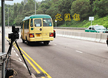 警方在車(chē)禍肇事路段放置車(chē)輛測(cè)速儀打擊超速駕駛。(圖片來(lái)源:文匯報(bào))