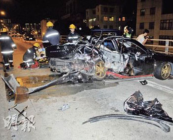 肇事跑車為三菱Evo VII跑車,警員事后發(fā)現(xiàn)跑車越線,現(xiàn)場遺下約20米的胎痕,正調(diào)查是否超速肇禍。與跑車迎面猛撼的私家車由朱姓24歲休班女警駕駛,朱某送院后情況穩(wěn)定,她通過酒精呼氣測試。