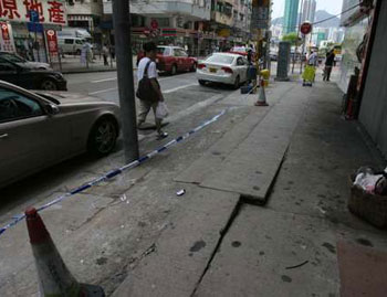 另外,高溫下土瓜灣北帝街出現(xiàn)懷疑“熱爆街”事件,行人路一幅約兩尺寬路面,突然石屎爆裂拱起約4寸高,不排除與天氣過(guò)熱有關(guān)。