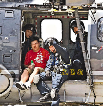 在東龍島爬山期間懷疑中暑的男子由直升機(jī)送院。(圖片來(lái)源:文匯報(bào))