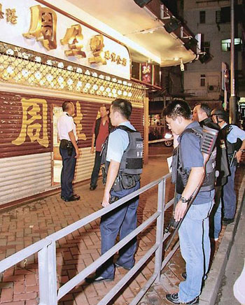 大隊香港警員趕至,穿上避彈衣,荷槍實彈兜截仍沒有結(jié)果。被劫金行為周生生金行,開設(shè)在大埔道近北河街交界處地下,營業(yè)時間由上午10時至下午7時半。