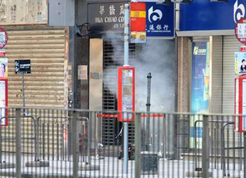 警方引爆在旺角發(fā)現(xiàn)的可疑物品。(圖片來(lái)源:大公報(bào))