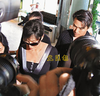 身穿深色裝束的三太縱然已戴上太陽(yáng)眼鏡,但仍難掩哀傷神情,一言不發(fā)的在保鏢開(kāi)路下匆匆進(jìn)入靈堂。至于陪同母親步入靈堂的超蓮和猷啟則沒(méi)有戴上太陽(yáng)眼鏡,但同樣表情神傷。