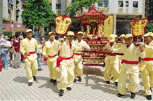 澳門媽祖文化節活動由澳門中華媽祖基金會主辦,其中天后宮媽祖駐駕、巡游祈福活動6日上午9時舉行,湄洲媽祖金身從媽祖文化村天后宮起駕至佑漢公園,并聯同來自內地、臺灣及東南亞等地區的代表、表演隊伍經筷子基、臺山、佑漢一帶巡游,讓信眾參拜,并安排各項福建民俗文藝表演。大批信眾、街坊沿途圍觀,場面熱鬧。
