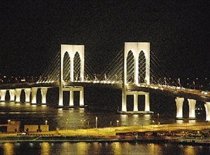 西灣大橋橋躉射燈未被盜去前,燈火通明。(圖片來源:澳門日報)