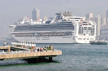 排水量超過11萬噸的鉆石公主號郵輪,14日載著逾3000名船員及旅客抵港。由于船只體積太大,不能靠近海運(yùn)碼頭,只能在西環(huán)對外海面停泊,旅客要乘接駁船只,乘船到中環(huán)港外線碼頭上岸。旅發(fā)局特別派出職員在碼頭接待,在碼頭設(shè)置咨詢及服務(wù)專柜,向旅客派發(fā)歡迎禮包。