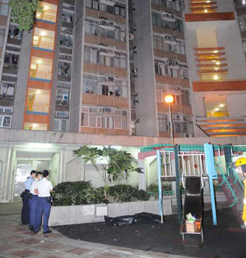 警員封鎖現(xiàn)場調(diào)查墮樓案。(圖片來源:大公報(bào))