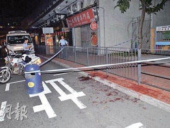 中新網10月29日電 據香港《文匯報》報道,香港屯門28日凌晨發生疑涉黑幫執行家法式砍人案。一名男子在酒吧泡吧后離開,突被七人窮追百米施襲,慘遭狂砍雙手導致手筋折斷倒臥血泊,逞兇者逃去。傷者經送院救治,情況嚴重。