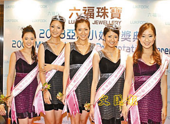 中新網12月11日電 據香港《文匯報》報道,五位新鮮“出爐”的亞洲小姐:冠軍姚佳雯、亞軍顏子菲、季軍賴琳恩及兩位友誼小姐姚鳳鳳與林淑蓉,10日到香港北角珠寶首飾贊助商門巿領獎。