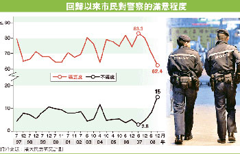 廖也說:“由于市民對公務員、公職人員要求高,加上以往警方滿意度都很高,稍有行差踏錯,影響便會較大,相信在近期事件影響下,市民要一段時間才能回復信心!