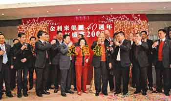中新網(wǎng)2月18日電 曾憲梓創(chuàng)辦的金利來集團(tuán)已成立40周年,15日晚筵開40席慶祝,當(dāng)晚更是曾憲梓74歲壽辰,曾氏一家大小俱盛裝出席,集團(tuán)高層及員工代表紛紛送上生日祝福,晚宴上曾憲梓更是與大家分享創(chuàng)業(yè)及自己的人生志向。