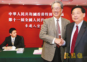 同樣即場遞交報名表的楊耀忠指出,已獲得60多份的提名,其中包括有民建聯主席譚耀宗、工聯會會長鄭耀棠等。他已提交了54份,剩下的會陸續交到登記處。他希望,競選連任后,可以繼續促進內地與香港的交流,關注內地教育的發展,協助內地與香港在教育方面的發展。至于新一屆港區人大競爭激烈,他認為,新一屆選舉多了許多不同界別的專業人士參選,是好事。