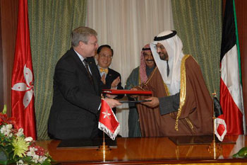 中新網(wǎng)1月28日電 香港特首曾蔭權(quán)日前在中東訪問(wèn),訪問(wèn)期間,香港和科威特簽署發(fā)展兩地貿(mào)易關(guān)系意向書(shū),涵蓋技術(shù)合作、便利商務(wù)旅游、展銷(xiāo)會(huì)和展覽,以及出入口的安排。