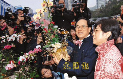 香港特首曾蔭權喜抱孫女“春風滿面”(圖)