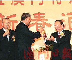 特首何厚鏵出席酒會并致詞表示,澳門特區政府及各界要全面、準確地把握國家副主席習近平早前訪澳期間的講話和指示的精髓。全面落實中央各項支持措施,妥善完成特區未來一年的各項重大工作。確保社會持續穩定和健康發展,積極把握逆境中的機遇,全力促進經濟適度多元化。