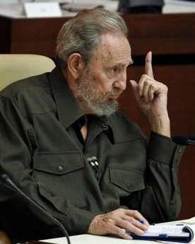 卡斯特羅身穿人們熟悉的橄欖綠軍裝,但軍裝上已經(jīng)沒有軍銜。古巴全國(guó)人民政權(quán)大會(huì)的代表們對(duì)他的出現(xiàn)報(bào)以熱烈的掌聲歡迎。