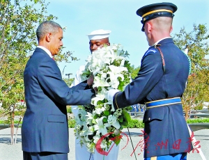 11日,奧巴馬在五角大樓為遇難者獻花圈。