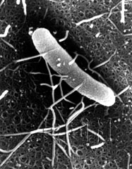 該細(xì)菌長(zhǎng)約2微米。據(jù)悉,同普通大腸菌相比,超級(jí)細(xì)菌的鞭毛更多,更具靈活性,感染能力也更強(qiáng)。超級(jí)細(xì)菌的特征是表面覆有一層可抵御白血球攻擊的膜,并可以改變形狀。