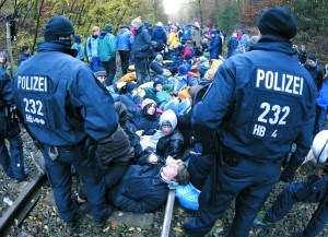 德國(guó)警方8日說(shuō),警方驅(qū)散大約3000名阻礙核廢料運(yùn)載列車前進(jìn)的抗議者,列車得以再次啟動(dòng),即將抵達(dá)目的地。