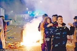 在布里斯托,群眾夜里辦趴,有人玩得太過火,頭部流血。(摘自英國每日郵報網站)