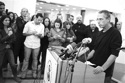 1月11日,在以色列特拉維夫附近的謝巴赫醫療中心,以色列前總理沙龍的兒子吉拉德·沙龍在新聞發布會上講話。新華社發